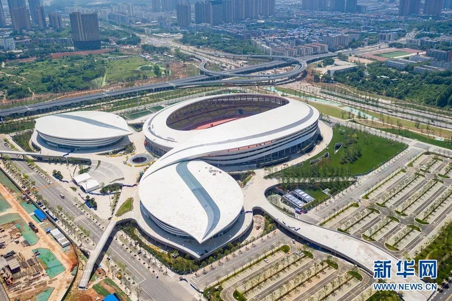 武漢五環(huán)體育中心是2019年第七屆世界軍人運動會主要比賽場館之一,將承接軍運會田徑、乒乓球和水上救生等三項賽事。包含3萬座體育場、8000座體育館和1000座游泳館,三大類場館以體育場為核心,兩館分居兩翼,呈品字形分布,狀如鳳凰展翅,頗具荊楚風(fēng)韻。