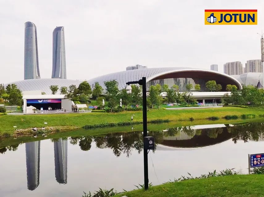 被譽為是在“蛋殼上踩巨人” 的成都天府國際機場,作為成都第二座機場、絲綢之路經(jīng)濟帶中等級最高的航空港之一,總建筑面積71.96萬平方米,鋼結(jié)構(gòu)體量6.5萬噸。佐敦為該項目鋼結(jié)構(gòu)提供了防腐、防火及面漆全系列產(chǎn)品。項目采用的是佐敦Hardtop Pro系列丙烯酸聚硅氧烷面漆,該產(chǎn)品不含異氰酸酯,為鋼結(jié)構(gòu)提供高效防腐及優(yōu)異保色保光性能的同時,兼具出眾的環(huán)保性。